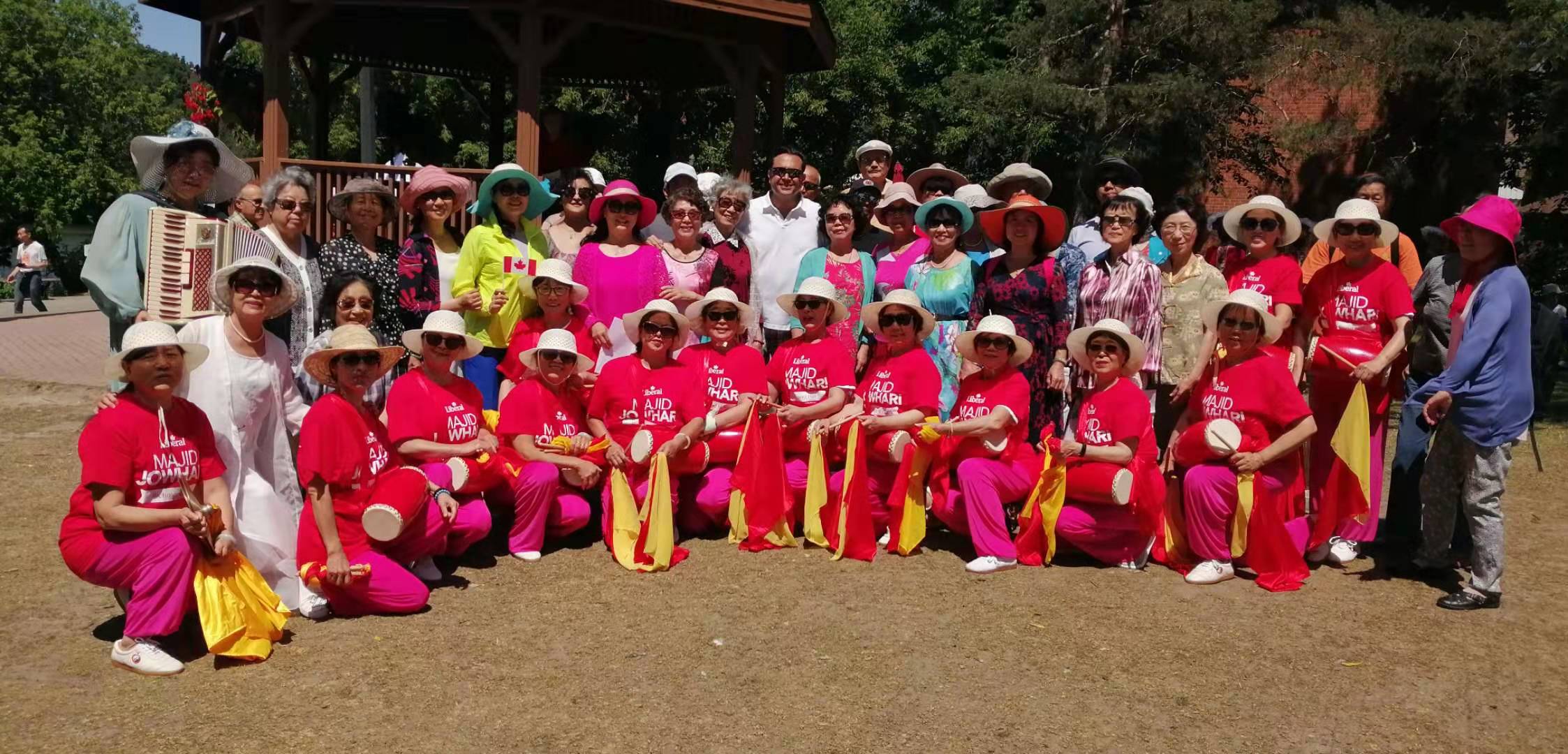 7月14日星期天,红枫晚霞50多位朋友,从四面八方来到will pond park,参加国会议员马万里的BBQ活动。大会由红枫晚霞会员唱国歌开始了文艺表演,随后大家又唱了<红枫晚霞之歌 、天边>两首歌曲。腰鼓队员们在铿锵的鼓叉声中表演了,中国传统的腰鼓舞蹈。会场红枫晚霞的摊位上,展示了mimi制作的各种美丽的丝网艺朮品,吸引了不少客人。