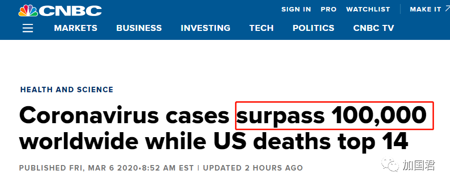 而全球今天新冠数字突破10万例,超过90多个国家宣布确诊。