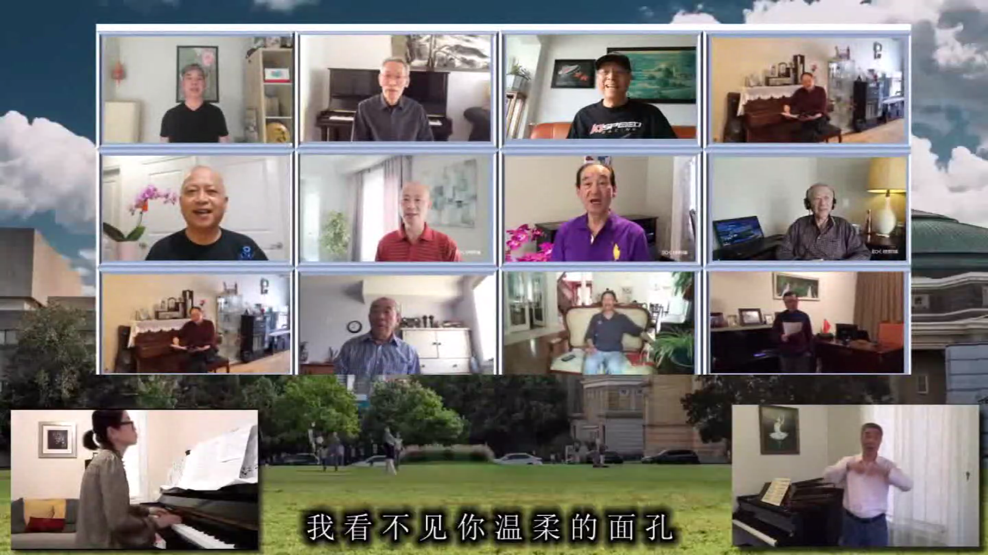 但是,真正要制作出一个云合唱的作品,远不是在云会议室里唱唱那么简单了。在艺术总监张庆昌老师的精心策划下,协会的”电脑专家“罗立基老师开始了技术攻关。展现在《空中俱乐部》节目里的视频《天使的身影》,是罗老师经历了无数个不眠之夜,在艺术总监张指挥的指导下,反反复复剪辑修改、将几十段音频、视频精密契合后制作完成的,谁能相信这一切是出自一位76岁高龄的老人之手。