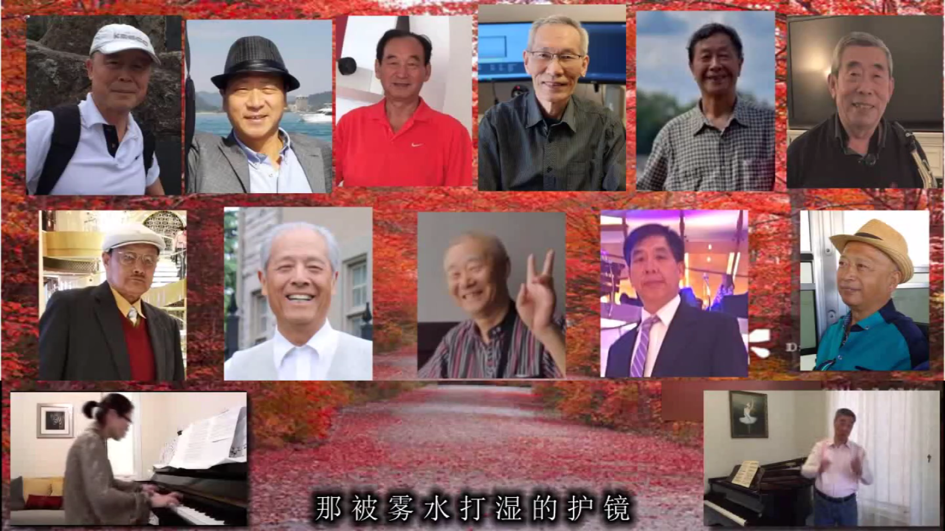 当然这里更少不了团队每一位成员的全力配合,从录音到录像,每位合唱者都必须要各自完成作业,不合格的只能重做,没商量!好几位团员为了交上合格的作业甚至唱哑了嗓子。大家互相切磋、互相帮助、交流经验;从指挥、伴奏、到所有合唱队员,总共收集了四十五份音频文件和几十张照片……。另外还有五位身处国内的团员也参加了云合唱,他们在国内晚上九点半参加云会议,等会议结束,已经是午夜了。经过一个月的不懈共同努力,红枫人凭着对合唱的执着与热爱、鼓起老骥伏枥与时俱进的精神、以热情饱满的姿态唱出了我们的心声。这也正是我们红枫晚霞合唱团倡导的:“活到老、学到老、唱到老、快乐到老的精神”。我们从中享受了学习的乐趣,品尝了付出后的收获,满满的正能量!满满的成就感!