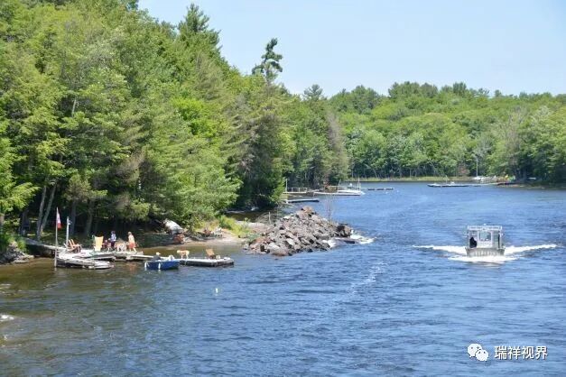 行到水尽处,坐看云起时。游轮经过礁石密布、水势汹涌的“魔鬼弯头”后,岛屿星罗棋布的3万群岛景色尽收眼底。船行之处湖面时宽时窄收放有致,依山傍岛任意随形。所谓3万岛屿大小不一,小者只是一两块冒出湖面的岩石,大者则是一望无际的茂密森林。只见湖岸两侧一栋栋色彩明快的别墅掩映在松林丛中若隐若现,不时有岸边的男女微笑着向游船招手致意。
