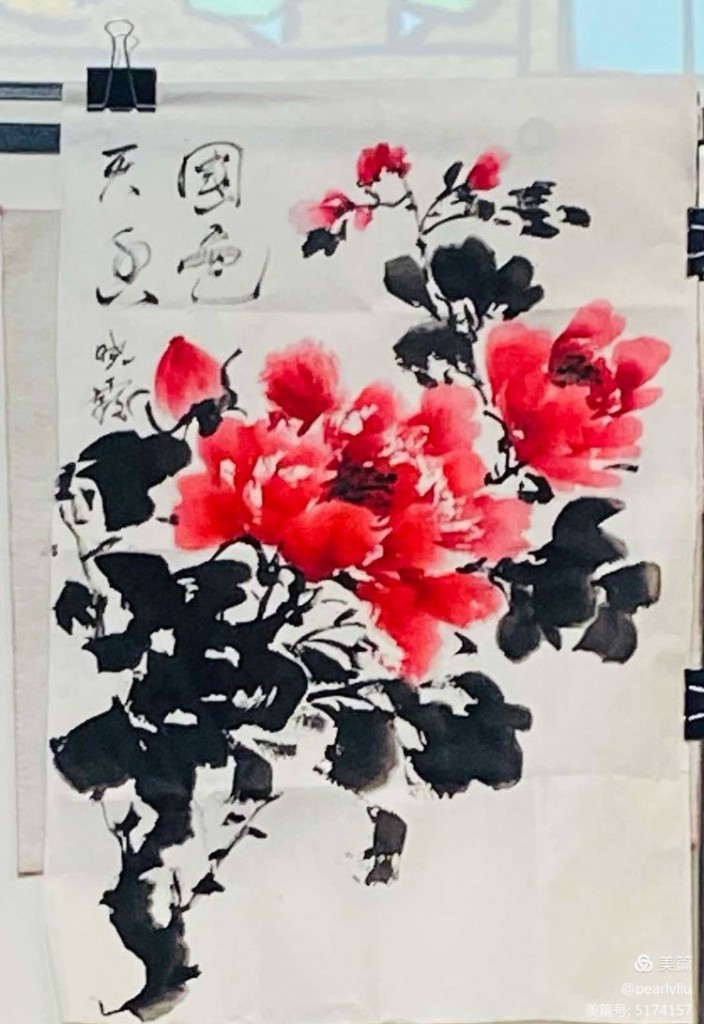 王晓霞老师当场作画,仅仅用了七分多钟,完成了一幅牡丹《国色天香》,一气呵成,落笔生辉。